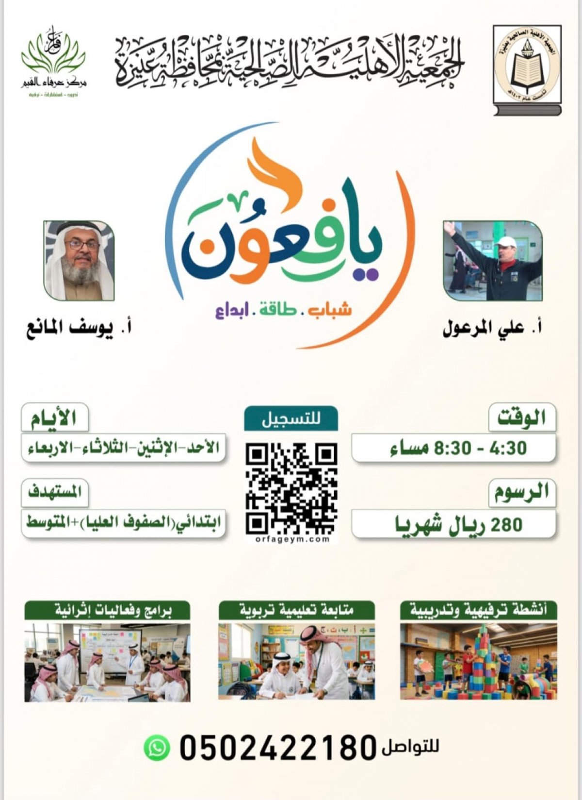 برنامج تربوي تعليمي ترفيهي تقدمه الجمعية الأهلية الصالحية بالتعاون مع مركز عرفاء القيم للصفوف العليا من المرحلة الابتدائية والمرحلة المتوسطة من الأحد إلى الأربعاء